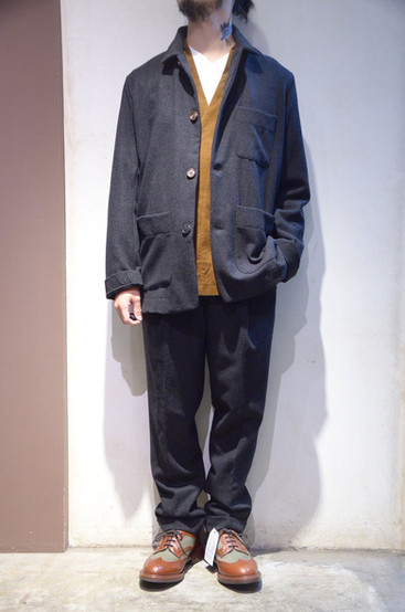 こちらジャケットのM,トラウザーズのSと共にお手に取って頂き、こちらではセットアップ共にそれぞれワンサイズオーバーにて着用しております。