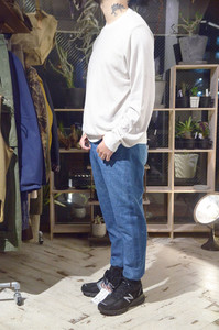169cm 58kgのスタッフ(普段メンズのSを着用)で、XLサイズはオーバシルエットになりますがリラックス感のあるゆったりした着合わせとしてお選びいただけます。袖丈が長すぎないので、XLを着てもあまりゆとりが出過ぎず、程よいオーバー感が演出できますね。
