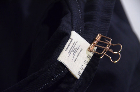 Solveigにとって作品作りの中で一番に重点を置いているのは素材選びです。デザインより先に生地を選定し、素材から創作へのインスピレーションを受けることもあるほど。彼女のコンセプトに沿うファブリックは、長く持続可能であり、合成繊維を使わず、倫理的に織られ、そして高品質で作品に適した生地でなければいけません。