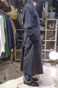 フロントを閉じるとこんな具合に。オーバーコートとしてみると、僕の身長体重でも全然有りなサイズ感ですね。175~180cmの方や普段メンズのL~XLを着用される方ですと適正サイズでご着用頂けるサイズとなります。