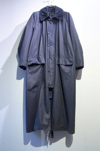 乗馬用の外套ということもあり全体的にゆったりとしたシルエットと非常に長くとられたレングスが特徴的なデザインの一枚。