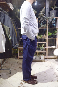 シルエットはゆとりのある腿周りから裾にかけてテーパードのかかった履き回しのしやすいラインを描きます。このデザインは以前にご紹介したPCSと同じくといった具合ですね。