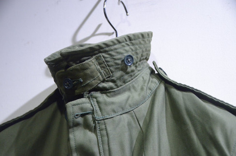 襟部分は幾重にもタタキ縫いがなされた堅牢な造り込みと、フロントにはフラップの4ポケットによるミリタリーならではの収納力を備えます。