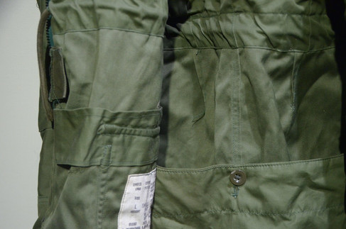 脇下にはベンチレーションが見受けられ、密度の高いコットンジャケットながらも通気の機能性を兼ね備え実用性も兼ね備えています。Combat Smoxkにベンチレーションが付くというディティール、初見なのですが、他の個体も同様なのかこの個体のみカスタマイズされているのか…もしご存じの方は是非教えてください。