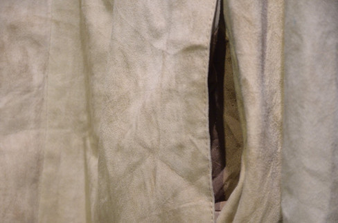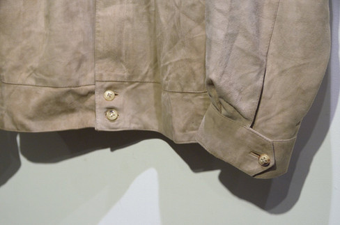 フロントを閉じるとまさにドリズラーといった佇まい。ぱっと見ではBARACUTAのG9のような印象ですが、詳細をみるとスウェードレザーの高級感が演出されるギャップが魅力的な一枚と思います。 気温が上がってきたものの春風が強い今時期のアウターにはうってつけの一枚ではないでしょうか。