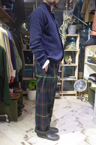 169cm 63kgのスタッフ(普段30 ~ 31 inch 78-80cmサイズを着用)でアジャスターの調整によって、ジャストフィットで着用できました。 この綺麗なシルエットラインと、程よくワンアクセントで着用できる落ち着いたチェックパンツ、やはりいいですね。イギリス軍の中でも、名品として言える一本ではないでしょうか。