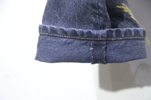 刺繍加工後に、製品加工を施しているため刺繍の風合い、デニム地には個体差が御座います。 デニム製品の特性としてご了承ください。
